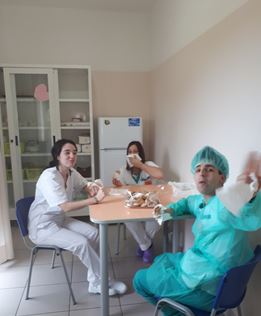 Nuestro período de prácticas lo realizamos en el centro “Fondazione Padre Alberto Mileno Onlus”. La sanidad en Italia es diferente respecto a España por lo que los primeros días en la fundación fueron un poco difíciles teniendo en cuenta también que nos resultó complicado comunicarnos con los pacientes. Poco a poco nos adaptamos con la ayuda de nuestros compañeros y hubo momentos de risas, bromas y mucho afecto. Nos sorprendió la atención que le dedicaban a los pacientes, la mayoría de ellos con problemas seniles. Son como una gran familia y eso nos lo transmitieron desde el principio.