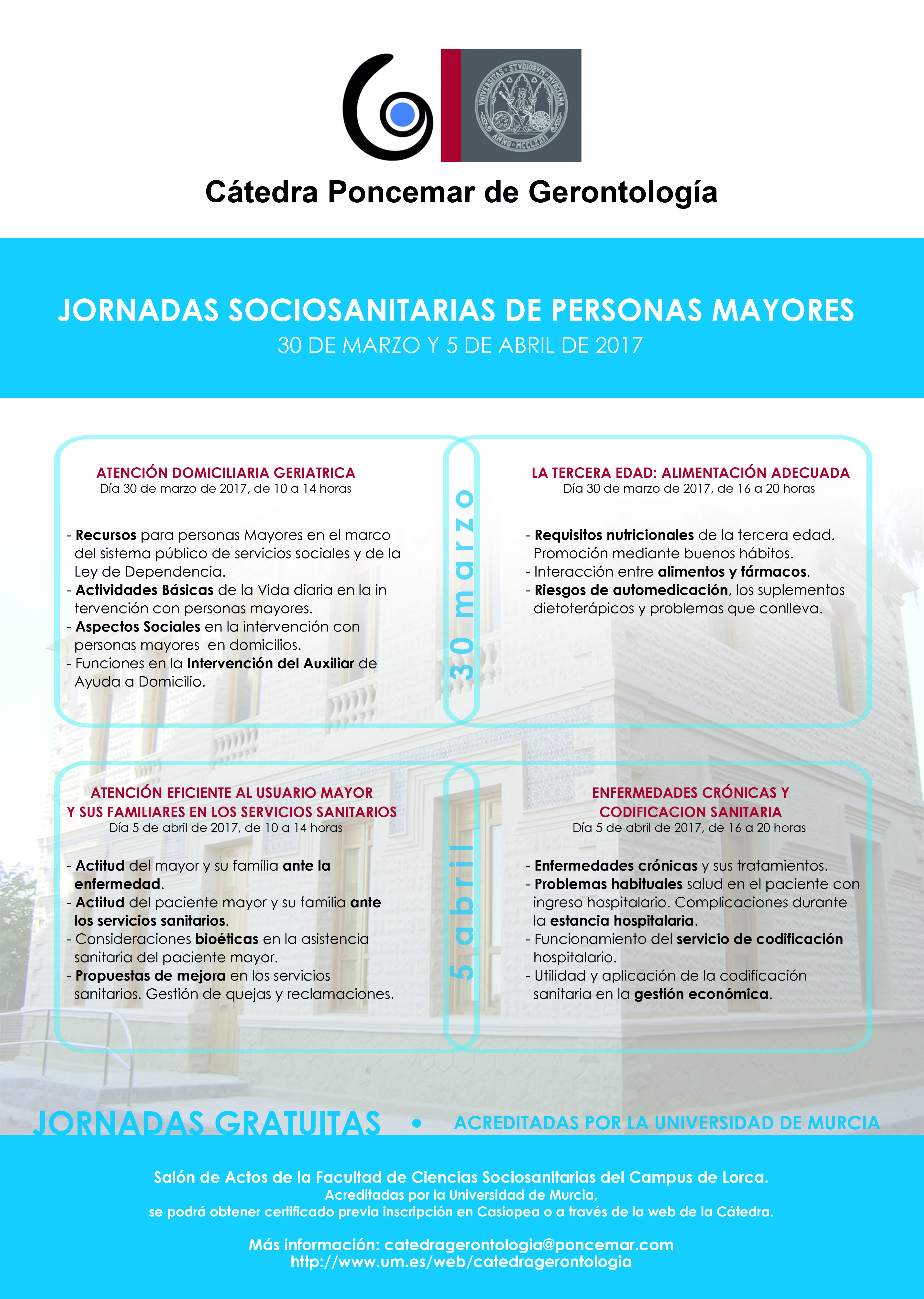 Jornadas de formación continua para la familia profesional de sanidad impartidos por la Cátedra Poncemar de Gerontología.